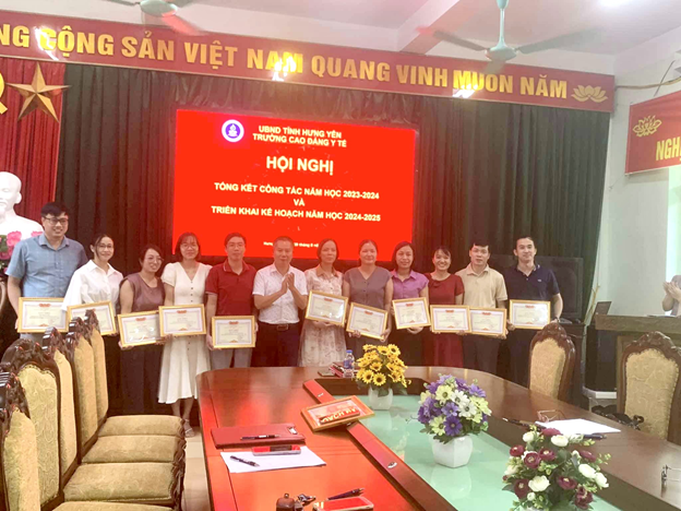 Tại Hội nghị, Trường Cao đẳng Y tế Hưng Yên đã tổ chức tuyên dương, khen thưởng đối các tập thể, cá nhân đạt thành tích xuất sắc trong thực hiện nhiệm vụ năm học 2023-2024.